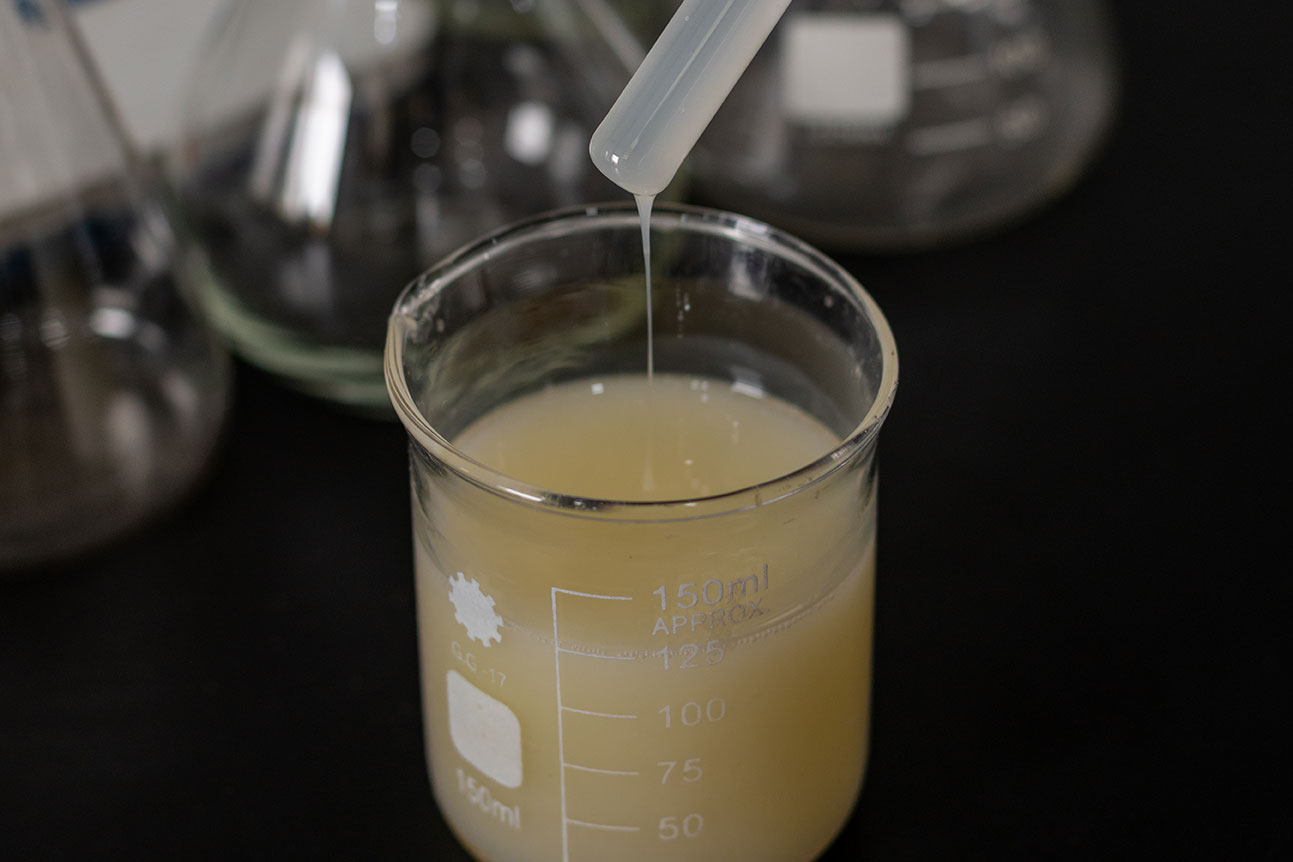 防水彈性乳液外觀為乳白色乳液狀,其主要成分為自交聯(lián)丙烯酸酯共聚型樹(shù)脂,屬于水性乳液,具有低粘度、高固含量的特點(diǎn)。